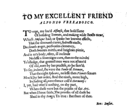 Alfonso Ferrabosco the younger (c. 1575 – March 1628) was an English composer and viol player of Italian descent. He straddles the line between the Renaissance and Baroque eras.