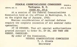 Cancellation notice of all amateur licenses in World War 2