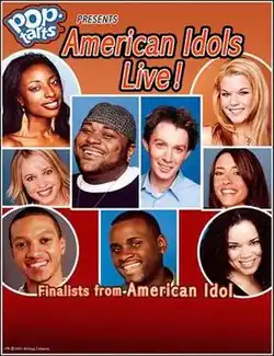 American Idols Live! Tour 2003 was a concert tour featuring 9 of the top 12 contestants of the second season of American Idol, which aired in 2003. It began on July 8, 2003, St. Paul, Minnesota and finished on August 31, 2003, in Anaheim, California. Josh Gracin was unable to participate in the tour as he was recalled to his unit in the U.S. Marines, and Corey Clark was barred from participating due to his failure to reveal his Misdemeanor arrest.[1] Corey Clark was replaced by Charles Grigsby for the tour, but the show producers opted not to replace Josh Gracin with twelfth-placed finisher Vanessa Olivarez.
