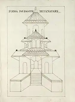 The Temple of Tenavarai Kovil, Thevan Thurai. Original painting/drawing name: "Forma do Pagode de Tanavare" from Plantas das fortalezas, pagodes & ca. da ilha de Ceilão (Portuguese)