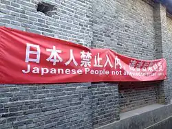There have been several reports that stores, restaurants, public institutions and hospitals in China refuse to serve Japanese customers because Japan has not apologized for the invasion of China.[28][29] Under Xi Jinping's general secretaryship, online hate speech against the Japanese has risen.[30] Online vitriol has been aimed at Japanese-language schools in China.[31] In July 2024, a knife attack on a Japanese woman and her child at the Japanese School of Suzhou led some Chinese social media users to write in support of the attacker, although the posts were condemned and quickly removed.[30][32][33] A Chinese woman who had intervened to stop the attacker later died from her wounds.[34][35][36] In September 2024, on the anniversary of the Mukden incident, a 10-year-old Japanese student was stabbed to death en route to a Japanese primary school in Shenzhen.[37][38][39] Online discussion of the killing was widely censored.[2] However, some condoned or were supportive of the killing.[40] In July 2025, an attack on a Japanese woman and her child in Suzhou on the 80th anniversary of the end of the Second Sino-Japanese War was also censored.[3]