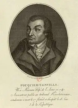 Antoine Quentin Fouquier de Tinville (French pronunciation: [ɑ̃twan kɑ̃tɛ̃ fukje tɛ̃vil], 10 June 1746 – 7 May 1795), also called Fouquier-Tinville and nicknamed posthumously the Provider of the Guillotine[1] was a French lawyer and accusateur public of the Revolutionary Tribunal during the French Revolution and Reign of Terror.