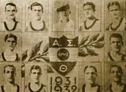 Aris' first major success was between 1927 and 1928 when they won the first Greek Championship,[5] beating finalists Atromitos and Ethnikos Piraeus exploiting the abstention from the championship teams of RECs. In the first race on 24 May, the team of Thessaloniki prevailed 3–1 Atromitos, while three days after losing to Ethnikos Piraeus 3–2. In iterative matches played in June in Thessaloniki, Aris won both of his opponents by 3–1 and thus crowned the first champion of Greece. Coach of the team was the German Thomas Kessler, and prominent players of Aris were, among others, Kostas Vikelidis, Savvas Vogiatzis that emerged and top scorer with six goals, Nikos Aggelakis, scorer of the finals with four goals and Dionysis Caltech.