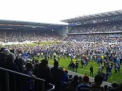 Arminia struggled against relegation again the next season but avoided dropping into the Regionalliga with a 13th-place finish.[31] The following year, Arminia they won their sixth promotion to the Bundesliga in 2001–02 by finishing second behind Hannover 96, with Artur Wichniarek scoring 18 goals.[32][33] Arminia were unable to avoid relegation the following season, earning only two points from the last six matches.[34][35] Arminia's tendency to move frequently between divisions during and since this period has led to them being described as a Fahrstuhlmannschaft, or yo-yo club.[36]