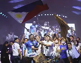 In 2024, incumbent Mayor Honey Lacuna succeeded Isko Moreno as party leader of Asenso Manileño after he left to pursue a comeback run for mayor in 2025, which was later confirmed.[9] Lacuna later joined the Lakas–CMD and formalized her re-election bid for mayor in 2025, eventually running against Moreno and 9 others.[10][11] However, Lacuna and Servo lost their re-election bid to Moreno and Chi Atienza, respectively, with the party winning 12 or one-third of the elected seats of the Manila City Council and 5 (initially 4 prior to the disqualification of Aksyon's Joey Uy) out of the 6 congressional seats in Manila.