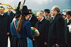Austria was the first foreign country that Russian president Vladimir Putin visited officially in June 2018 following his reelection for the fourth term as president of Russia.[17] In the course of Putin's visit, the CEOs of OMV and Gazprom signed an agreement to extend Russian gas supplies to Austria until 2040, with both Putin and Austrian Chancellor Sebastian Kurz in attendance.[6] The signing occurred at a time when the two countries were marking 50 years of Soviet/Russian gas supplies to Austria.[6]
