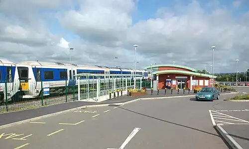 The station was originally not due to be completed until 2010,[1] but actually opened on 14 December 2008, although the station building itself did not open until 1 June 2009.[4] In the interim while the station buildings were being completed, tickets and facilities were provided from Portakabins.[5]