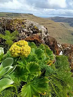 On Macquarie Island, A. polaris is part of the dominant vegetation.[11][12] Many species of myxomycetes were found on A. polaris and another megaherb, Pleruophyllum hookeri, as these species are the primary substrates available for slime moulds.[12]