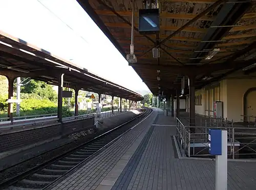 Bad Kösen station is a railway station in the spa town of Bad Kösen, located in the Burgenlandkreis district in Saxony-Anhalt, Germany.