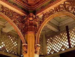 Though many houses are built in a standard design, many houses are also mixed, arranged, patterned and/or coated with a variety of designs from different architectural styles and cultures connected to the Philippines. This is including Chinese, Romanesque and Classical styles among others. These houses could have an unprecedented mixing and matching of architectural styles, such as having Neogothic and Neo-Mudéjar or Moorish Revival details in the same corners – that is, on top of Baroque.[14] Although retaining its basic form, the 19th-century bahay na bato reflected changing tastes through the incorporation of motifs from prevalent styles such as Victorian, Renaissance Revival and Neoclassical decorations which included columns, pilasters, caryatids, atlases and friezes adopted from Greco-Roman architecture, the civilizations from which Spanish culture descend. Classical traditions in these houses also appear in Beaux-Arts later in history. The dawn of Art Nouveau also greatly influenced the mixing of styles and aesthetics of these houses. Many later bahay na bato buildings adapted design styles,such as Art Deco during the latter era of American rule, and even through the postwar period of loose restoration.[10] The mixing of so many different architectural styles give the bahay na bato a distinct look that is reflective of the Philippines' unified cultures and society.