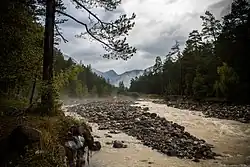The Baksan[a] (/bɑːkˈsɑːn/) is a river in Kabardino-Balkaria in Russia. It flows east northeast and joins the Malka just before that river joins the northwest bend of the Terek. The Baksan is 169 kilometres (105 mi) long, with a drainage basin of 6,800 square kilometres (2,600 sq mi).[1]