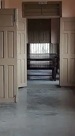 Ashrama has a large and green campus. It contains a primary school section, secondary and higher secondary school section, libraries, three free coaching centres, a charitable homeopathic dispensary, a mobile medical unit, prayer hall, a temple, monk's quarters and playgrounds.[3] A fibreglass relievo (17 ft x 22 ft) of Sri Ramakrishna's Monastic Disciples was inaugurated in Ramakrishna Mission Baranagar by Revered Swami Shivamayananda ji Maharaj on 15 March 2021.[24] On 6 October 2023, the showroom-cum-sales Counter at Ramakrishna Mission Ashrama, Baranagar was inaugurated by Swami Suvirananda ji, General Secretary, Ramakrishna Math and Ramakrishna Mission.[25]