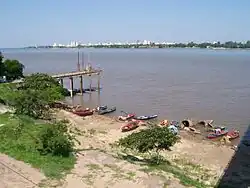 With respect to inland waterways, it has a small dock on the river Paraná and a beach of no more than 50 meters wide from which the fishermen prepare their journey.