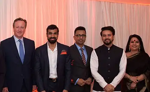 Barun Das and his wife Dr Sandipa Bhattacharya with former UK PM David Cameron and Indian IB minister Anurag Thakur