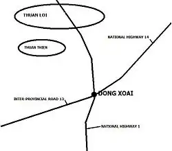 After those operations the VC 9th Division was ordered to attack Đồng Xoài.[9]: 22  Đồng Xoài was a district seat in southern Phuoc Long Province, nestled in sparsely populated country dominated by forests and rubber plantations. Outside the range of most friendly artillery, the town sat astride a strategic road junction which connected Inter-Provisional Road 13, National Highway 1 and Highway 14.[8]: 116 [2]: 624