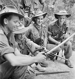 A 2/43rd Battalion mortar crew firing on Japanese positions near Beaufort on 28 June 1945