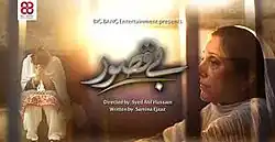 Bay Qasoor (Urdu: بے قصور, lit.'Innocent') is a Pakistani television serial premiered on 11 November 2015 on ARY Digital. It is produced by Fahad Mustafa and Ali Kazmi under Big Bang Entertainment.[1] The cast includes Samina Peerzada, Sajid Hassan, Saboor Ali, Waseem Abbas and Aiman Khan among others.[2][3][4]