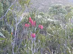 Beaufortia decussata, commonly known as gravel bottlebrush,[2] is a species of flowering plant in the myrtle family, Myrtaceae and is endemic to the southwest of Western Australia. It has long stems branching only near the upper ends, and scarlet to orange-red flowers in a bottlebrush shape beneath the branches.