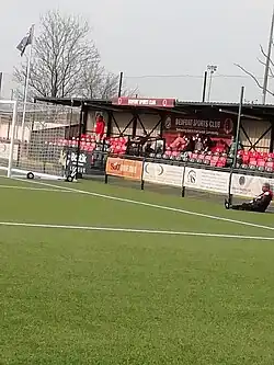 In 2004 Bedfont joined Division One of the Middlesex County League, and after finishing as runners-up in their first season, were promoted to the Premier Division.[4] In 2006–07 and 2007–08 they won the league's Open Cup,[5] whilst the 2008–09 season saw them win the Middlesex Premier Cup and finish third in the Premier Division,[5][6] after which they moved up to Division One of the Combined Counties League.[7] In 2011–12 they finished as runners-up in Division One, earning promotion to the Premier Division.[7]