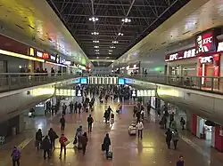 Beijingxi (Beijing West) railway station (Chinese: 北京西站; pinyin: Běijīngxī Zhàn), colloquially referred to as West Station (Chinese: 西客站), is located in western Beijing's Fengtai District. Opened in early 1996 after three years of construction, it was the largest railway station in Asia with an area of 510,000 m2 (5,500,000 sq ft),[1][2] before being surpassed by Shanghai Hongqiao railway station in platform capacity. The station serves in average 150,000–180,000 passengers per day with a maximum of 400,000 people per day.[3] It was expanded during the 2000s decade, during which several platforms were added. It also has a fairly large number of car-parking spaces.