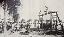 Desertion among the Beiyang Army still occurred at a significant level, and some of that was among the conscripts that had been drafted from different parts of northern China.[56] The Qing government officially did not have conscription, but it was practiced by the Beiyang Army.[57] Decapitation was one punishment that was used for desertion.[56] Yuan Shikai maintained strict discipline, but he tried to make sure that the troops received their pay on time.[58] Officers were recruited on the basis of their education and ability rather than on personal connections, and eventually about half of the Beiyang Army officers were either from military schools other than Yuan's Baoding Military Academy, or, more often, had studied abroad, especially in Japan.[59]