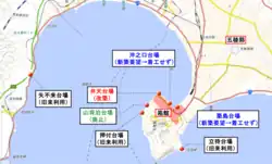 2. ^ The designation "Daiba(台場)" is sometimes replaced with the synonymous Japanese term "Hōdai(砲台)," as in the case of "Benten Daiba(弁天台場)" being written as "Benten Hōdai(弁天砲台)."