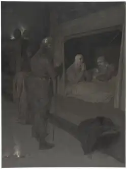 The feud reaches its peak with people from Gunnar's household burning Njáll and his family inside their house. Bergþóra is offered the opportunity to leave the house, but chooses to remain with Njáll and share his fate. They retreat to their bed, commit their souls to God, and die in the fire.[6]