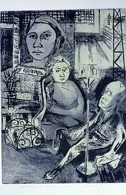 ![]() Self Portrait with Parents, 1949, intaglio (etching and softground), 18" x 13". Private Collection. | |