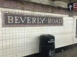This station's name is spelled with two "e"s while the Beverley Road station on the BMT Brighton Line on the same street is spelled with three "e"s. That is because the street is split in half at Flatbush Avenue. To the west, it is spelled with three "e"s and to the east, formerly with two; the Nostrand Avenue Line station serves the eastern half of Beverley (formerly Beverly) Road.[14]