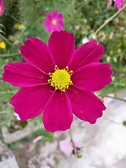 Cosmos bipinnatus, commonly called the garden cosmos, Mexican aster[2] or cosmea,[3] is a medium-sized flowering herbaceous plant in the daisy family Asteraceae, native to the Americas. The species and its varieties and cultivars are popular as ornamental plants in temperate climate gardens.[4][5][6][7]