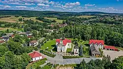 • Manor House - fir and larch manor house and buildings, erected in the first half of the 20th century in the folk manor style of writer Józef Ozga- Michalski. The buildings were constructed on the basis of the preserved fragments of the foundations of a much older building and a 200-year-old vaulted cellar. The object is located on the tourist route Świętokrzyski Literary Trail.