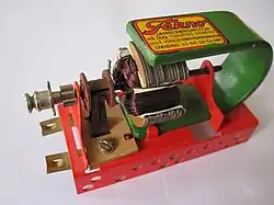 The simple bipolar motor has been widely used in electric toys, since the early days of tinplate toys.