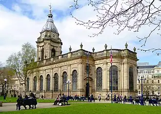 Colmore Row is the centre of the Colmore Row and Environs Conservation Area which consists of St. Philip's Cathedral.[10] The Jewellery Quarter is also covered by a conservation area.[11] Other quarters in the city centre are Birmingham Chinatown, Irish Quarter and Learning and Technology Quarter.