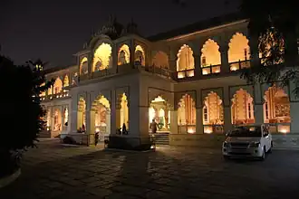 The Bissau Palace Hotel, Jaipur is a heritage hotel in Jaipur, in India. Built in the 19th century, it was the palace of Raghubir Singhji, a royal nobleman. It is located just outside the walls of the old city of Jaipur, a short distance to the north of Chand Pol (an entrance gate to the old city). It is situated 1 kilometre (0.62 mi) northeast of the downtown area.[1]