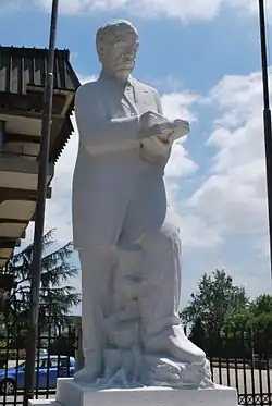 Koneski was born on 19 December 1921 in Nebregovo in the province of South Serbia, part of the Kingdom of Serbs, Croats and Slovenes (current-day North Macedonia), in a pro-Serbian oriented family.[5][6][7] He belonged to the Ljamevci family, whose Slava (patron saint) was St. Nicholas Day.[8] He received a Royal Serbian scholarship to study in the Kragujevac gymnasium or high school in central Serbia.[3] When Koneski returned to his native village, he spoke a heavily Serbianized language and was ridiculed for this, upon that he felt like he betrayed his people.[9] Later, he studied medicine at the University of Belgrade, and then changed to Slavic studies. In 1941, after the defeat of Yugoslavia in Aufmarsch 25, and the subsequent Bulgarian rule of Macedonia, he enrolled in the Faculty of Slavic Studies at the Sofia University under the name Blagoy Konev.[10] After the Bulgarian coup d'état in September 1944, he returned to his native land, before completing his higher education. Here Koneski began working in the department for communist agitprop at the Main Headquarters of the Macedonian Partisans.