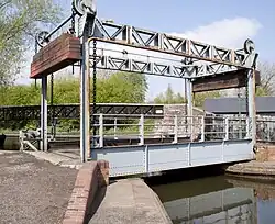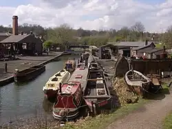The boat dock at the Black Country Living Museum was built in 1976.[1] Like many boat docks in the region its buildings are made out of recycled boat timbers from derelict wooden boats. The thousands of boats that used to work the Black Country canals all needed constant maintenance.[2]