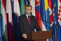 Minister of Justice of Poland Krzysztof Kwiatkowski during the official commemoration of European Day of Remembrance for Victims of Stalinism and Nazism in 2011, during Poland's EU presidency