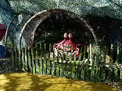 Also in Nurseryland is the wishing tree, a tree that houses a family of musical pixies. A vicar on a seat provides a popular photo opportunity, along with a toadstool which since the 1990s has had its date changed annually to the corresponding year. Nurseryland was sited on an area previously on park maps named as the fern Glen. It was expanded for the 1980 season with new additions. Little Miss Muffet was removed circa 2020. As of 2025 NurseryLand has a new perimeter fence . As of 2025 a new entrance pathway is going in nearer the chine café. As of 2025 the NurseryLand lookout viewpoint platform and talking telescope have been removed due to continual cliff erosion in the area . |