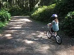 A number of developed and undeveloped areas for recreation exist in and near the Blue Hills. The largest that is open to the public is Green Mountain State Forest, a multi-use, over 6,000-acre (2,400 ha) state forest containing Green Mountain itself and owned by Washington State Department of Natural Resources. The state forest allows camping, off-road vehicles, horseback riding, and hiking.[31] The Bremerton watershed contains the eastern half of Gold Mountain with an associated restricted protective buffer, and is somewhat larger than the state forest.[32] Entry to the watershed by the general public is restricted, but Gold Mountain Golf Course was built on city watershed property on the south side of the hills.[33] Together the watershed and Green Mountain State Forest represent over half of Kitsap County's open space.[32]