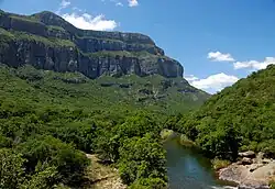 The Blyde River Canyon is a 26 km long[1] canyon located in Mpumalanga, South Africa. It is the third-largest canyon on Earth, behind the Grand Canyon and the Fish River Canyon[1][2] Unlike the Grand and Fish River Canyon, the Blyde River Canyon is a "green canyon" which is dominated by subtropical vegetation. The canyon forms part of the Blyde River Canyon Nature Reserve.