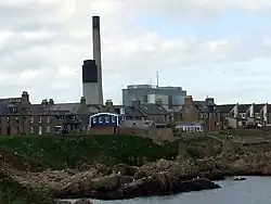 Adjacent to the north side of the village is Peterhead Power Station (generating capacity: 2,390MW, limited to 1,550MW) on which construction commenced in May 1973, being brought into operation in 1980. Originally intended as a gas-powered station, it was later converted to burn gas or oil and is currently powered by the entire gas supply of the Miller Field.[19]