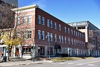 The Boerner-Fry Company/Davis Hotel is a historic building located in Iowa City, Iowa, United States. Emil Louis Boerner was born in Prussia and came to Iowa City with his family when he was 12. He was educated at the Philadelphia College of Pharmacy, and he owned and operated a drugstore in Iowa City for 57 years.[2] He was also one of the primary organizers of the Iowa Pharmaceutical Association, a member of the faculty at the newly established Iowa College of Pharmacy in Des Moines, and was involved in establishing the Department of Pharmacy at the University of Iowa where he served as its first dean.[2] Boerner and his partner William A. Fry had this building constructed in 1899 as a factory that produced toilet articles and light pharmaceuticals. Local contractor Jacob J. Hotz was responsible for its construction. The factory relocated to another facility in 1915, and went out of business the following year. This building was used for a variety of businesses until 1922 when it was converted into the Washington Hotel. George W. Davis renamed the hotel after himself in 1952, and he continued to operate it until 1972. It was then converted into office and retail space. The building was individually listed on the National Register of Historic Places in 1983.[1] In 2021, it was included as a contributing property in the Iowa City Downtown Historic District.[3]