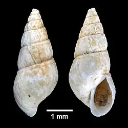 Boonea bisuturalis (also known as the three-toothed odostome or the two-groove odostome) is a species of small sea snail, a pyramidellid gastropod mollusk or micromollusk in the family Pyramidellidae, the pyrams and their allies. The species is one of eleven known species within the Boonea genus of gastropods.[2]