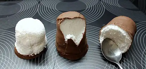 • Krembo – This confection consists of three parts: cookie, whipped cream, and chocolate. The cream and chocolate require the blessing Shehakol nihye bidvaro, while the cookie part requires Mezonot. There is no consensus as to which component is the main one. Therefore, some rabbis advise separating the cookie and blessing Mezonot on it first, then Shehakol on the cream and chocolate.[1] Others rule that the cream and chocolate are primary and the cookie is secondary, so the blessing is Shehakol for the entire Krembo.[2] Some authorities rule that it depends on the individual's preference and intent.[3]