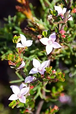 Boronia edwardsii, commonly known as island boronia,[2] is a plant in the citrus family, Rutaceae and is endemic to South Australia. It is a small, erect shrub with trifoliate leaves and pink or white flowers with four petals and eight stamens. It is common on Kangaroo Island but rare on the mainland.