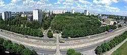 The neighborhood is named after a large village that was founded at the site. The contemporary urban look comes from the 1960s and 1970s. The neighborhood is divided into four sections: Mykilska, Mykhailivska, Bratska, and Pivdenna (South) Borshchahivka. The first three are former villages incorporated into Kyiv, while the last section was built in 1980s in place of northern Bratska Borshchahivka.[1] Two villages named Petropavlivska Borshchahivka and Sofiivska Borshchahivka also exist nearby, but they do not belong to Kyiv.