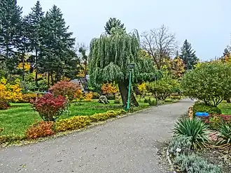 Between 1946 and 1951, technical installations were set up, a small greenhouse and a farm house were built and the garden gradually replenished with new species of trees and bushes, native and foreign.[3] In 1946, the city botanic garden was officially opened, with Andrzej Michalski as first director.[4]