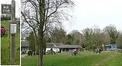 The village of Box Hill is to the east of the summit and to the west of the Country Park owned by the National Trust. The earliest flint cottages date from the 1800s, although much of the village was constructed in the first half of the 20th century.[11] By 2005 there were more than 800 dwellings, of which over five hundred were mobile homes. An estimated 41% of the community is aged 60 or over.[12] St Andrew's Church, part of the ecclesiastical parish of Headley, was consecrated in 1969 and the village hall opened in 1974.[13][14] The village is not part of a civil parish.