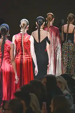 Braids (also referred to as plaits) are a complex hairstyle formed by interlacing three or more strands of hair.[1] Braiding has never been specific to any one part of the world, ethnic type, hair type or culture, but has been used to style and ornament human and animal hair for thousands of years world-wide[2] in various cultures around the world.