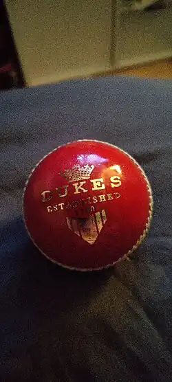The Duke family began hand-manufacturing cricket balls as a cottage industry at Redleaf Hill, Penshurst, Kent, England in 1760 and continuing until 1841.[3] Having gained the Royal patent for the cricket balls in 1775, Duke made the first-ever six-seam cricket ball, which was presented to the then Prince of Wales and used in the 1780 English cricket season. In 1851, Dukes triple-sewn ball won a prize medal at the Great Exhibition and a gold medal at the Melbourne International Exhibition in 1880.[4][2]